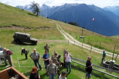 A Camperio il convoy si arricchisce ulteriormente di altri 5 veicoli con i loro detentori e gli ospiti. Siamo, dunque, ormai 16 mezzi che inforcano la via per Il Bosco del Gualdo Maggiore. Quindi si apre alla nostra autocolonna la barriera per la pista forestale sterrata che attraversa questo Bosco: scorci di panoramiche mozzafiato verso Dötra, il Sosto, Olivone, ecc. si presentano ai nostri sguardi. Ecco quindi un ampio spiazzo per (seconda certezza) degustare il consueto, ricco aperitivo organizzato ed offerto da HafliPinz Ti e stringerci la mano per un cordiale saluto. A seguire, la colonna si avvia verso Gariva dove imbocca la ripida rampa che ci conduce alla Capanna dello Sci Club Crap, Ponto Valentino. Allestito il parco veicoli nel pascolo poco distante, raggiungiamo a piedi la Capanna dove Bruno ed il suo team ci accolgono calorosamente illustrandoci le caratteristiche del menu previsto.