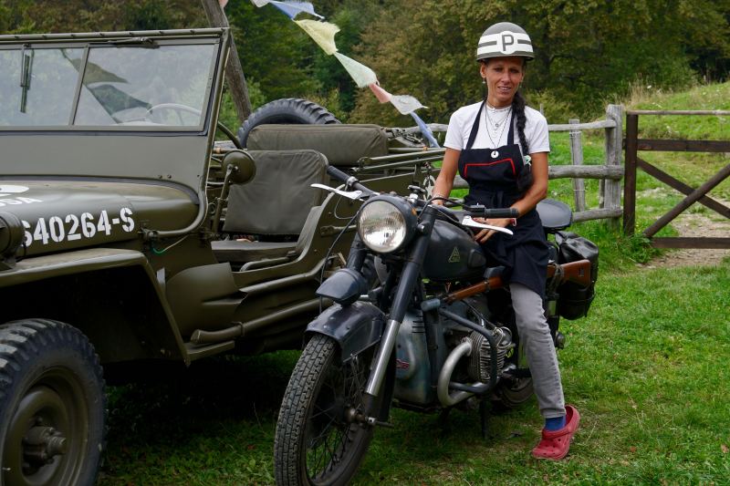 Un po’ prima delle nove il convoy di sedici mezzi si è mosso: un Haflinger, parecchi Pinzgauer e Puch, alcune Jeep, un’Alfa Romeo “Matta” del ‘52 e una moto Condor del ‘53 cavalcata da due baldi giovanotti. Fino a Sonvico tutto liscio, poi al vecchio campo di calcio si è imboccato lo sterrato che ci ha portati dapprima fino a Madonna d’Arla e poi, da Rosone, su su fino all’Alpe del Pairolo, a circa 1400 metri.