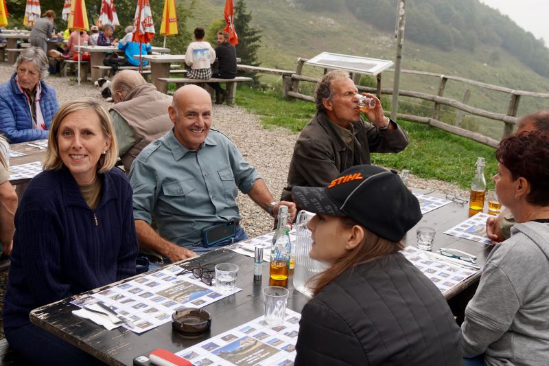 Alla cerimonia ha fatto seguito un ricco aperitivo offerto dal nuovo presidente Angelo Fassora e servito nel rispetto delle norme sanitarie vigenti. Poi, piccola scarpinata a piedi e ritrovo alla Capanna del Pairolo dove si è pranzato con polenta e brasato, fatti come Dio comanda.